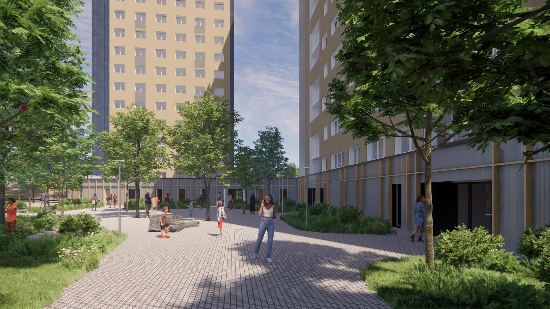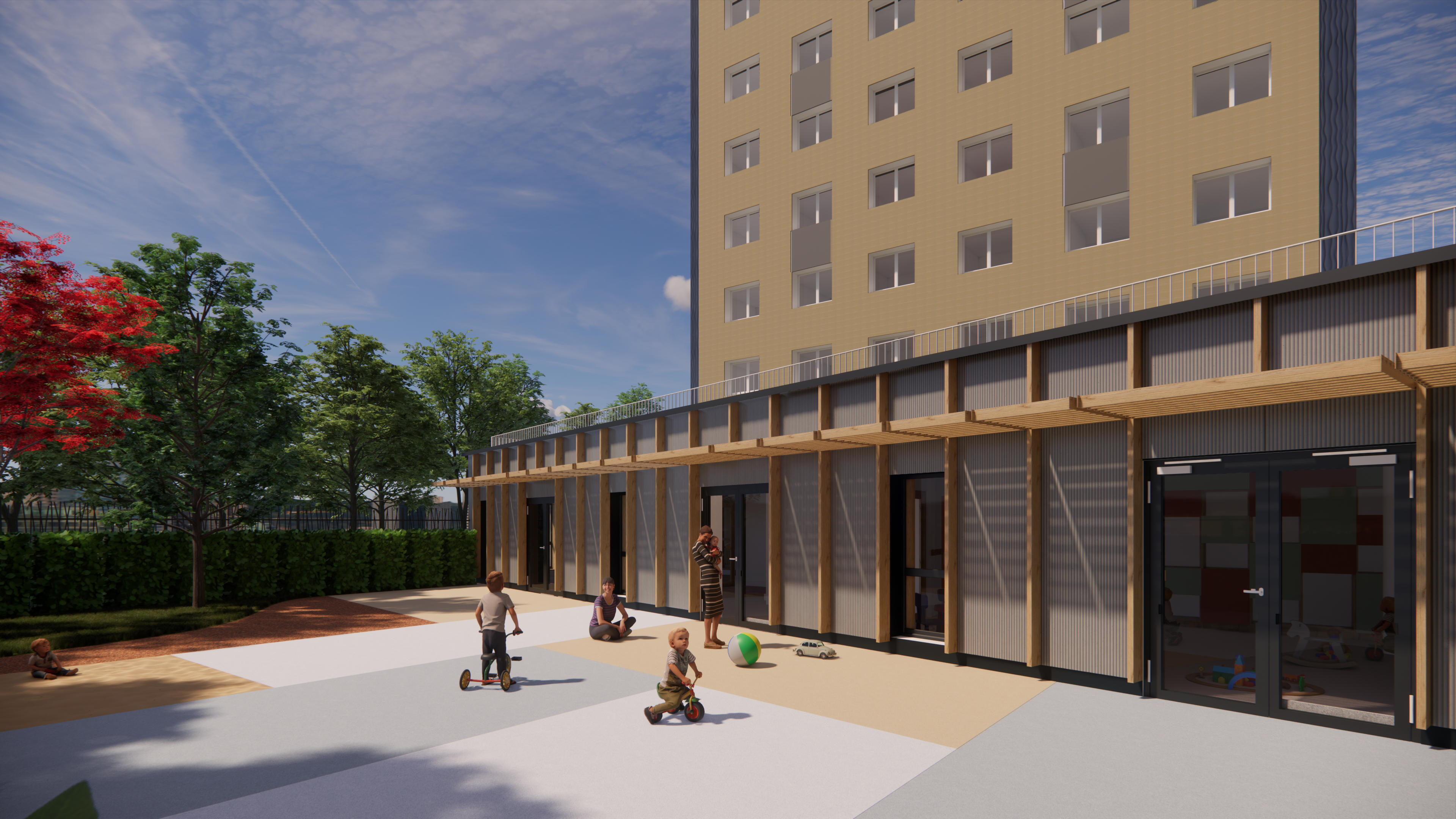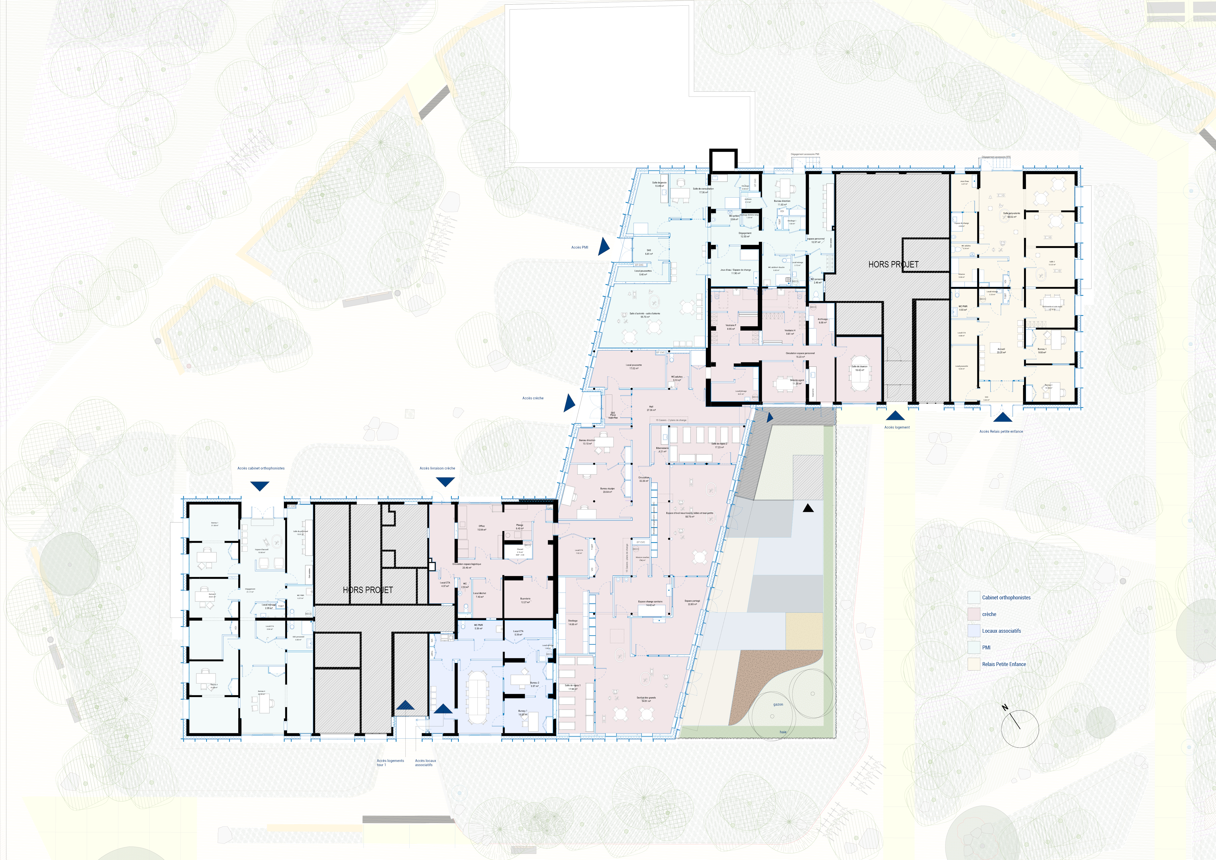 Programme : Restructuration et extension du socle de tours de logements - Aménagements d'équipements publics petite enfance : crèche, PMI, Relais Petite Enfance, Cabinet orthophonistes, Locaux associatifs